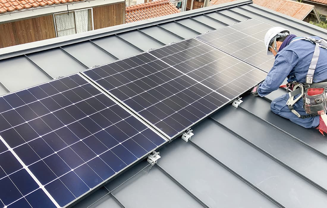 太陽電池パネルを屋根に金具で固定するなど、 工事で最低限必要なもの以外は、お客様の大切な家に傷をつけないよう、しっかりと気を配っています。